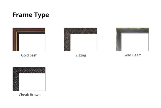 | Frame Color | Brown With Gold Sash, Gold Line, Maze Brown, Mazzon With Check Brown, Plain Black, Plain Brown, Stripes Black, Zigzag Brown |
