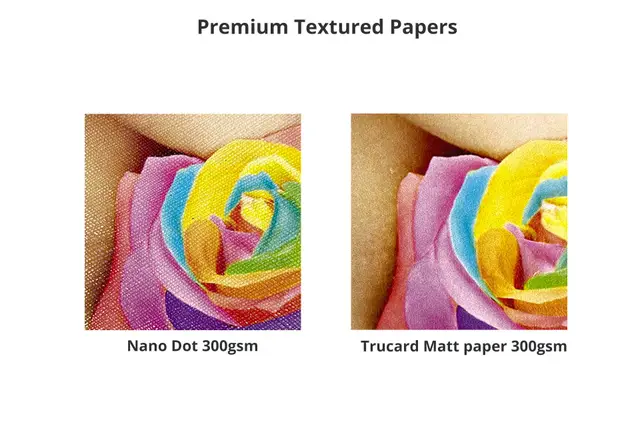 - Paper Choices: Select from 3 distinct paper types and explore 10+ premium material options, including textured, smooth, and glossy finishes.